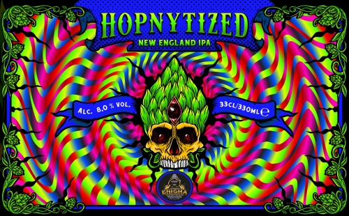 Enigma Hopnytized NEIPA is a cloudy New England IPA-style beer, brewed with the hop varieties Enigma, Citra and Mosaic.